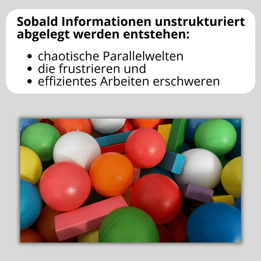 - Die Dokumente sind unstrukturiert und müssen jedes Jahr „zusammengesucht“ werden